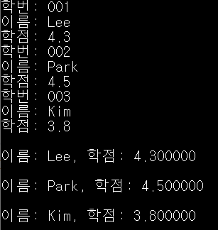 printf("학번: %d\n이름: %s\n학점: %f\n\n", s1.number, s1.name, s1.grade);