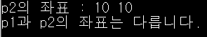 printf("p1과 p2의 좌표는 다릅니다.\n");