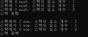 if(intStack.pop(data)) cout<<"스택에서 "<<data<<" pop, 스택의 요소 개수 : "<<intStack.size()<<endl;