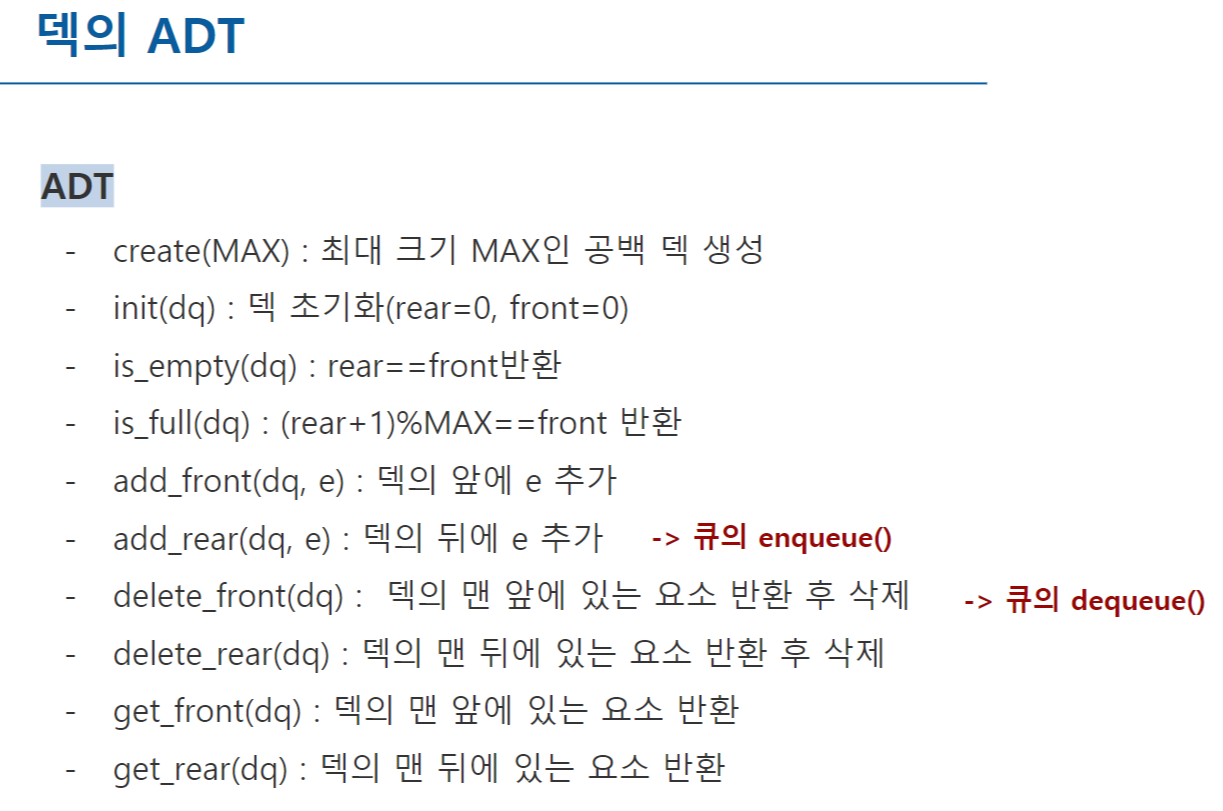 그리고 get_rear(), get_front() 의 연산이 기존 큐에서 추가된 것이라 볼 수 있다.
