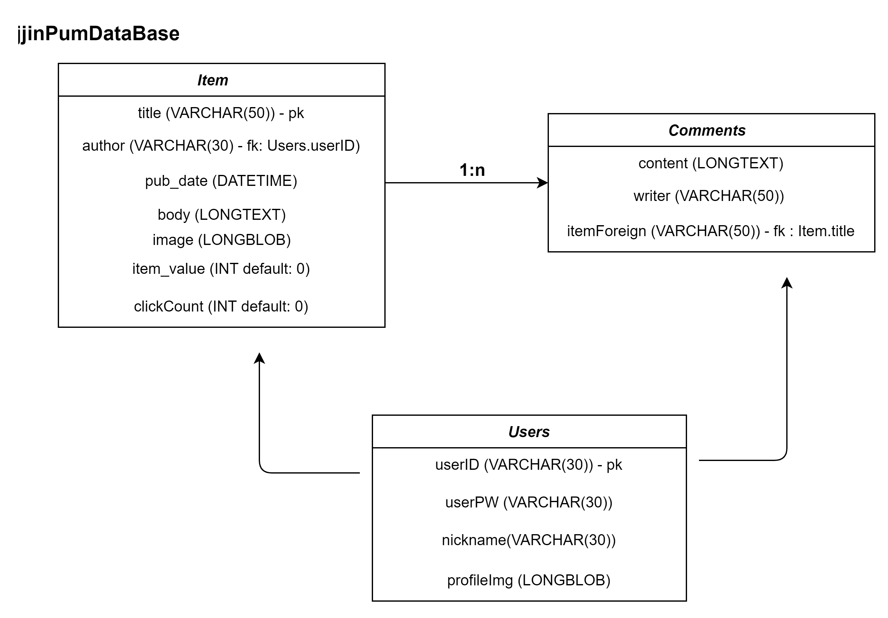 jjinPumDataBase 라는 이름의 데이터베이스를 생성하였다.