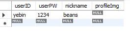 - ex) User 테이블의 column - userID, userPW, nickname, profileImg