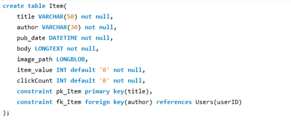 constraint fk_Item foreign key(author) references Users(userID) # foreign key );