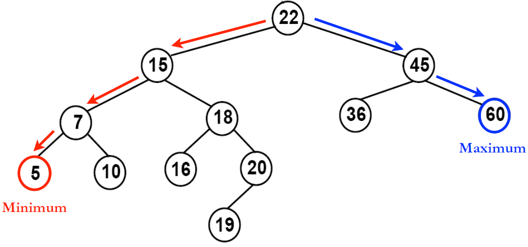 - 왼쪽 서브 트리 키들은 루트 키보다 작다.