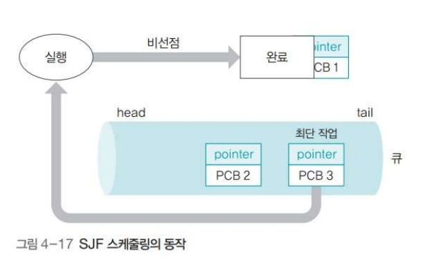 - 가장 대기 시간이 짧은 알고리즘이지만, OS가 프로세스의 종료 시간을 예측하기 어렵고 아사 현상이 일어나기 때문에 잘 사용하지 x