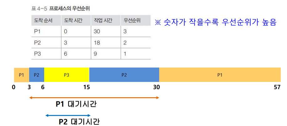 - 시스템에는 다양한 우선순위의 프로세스가 공존 → 우선순위가 높은 프로세스가 CPU를 먼저, 더 오래 차지