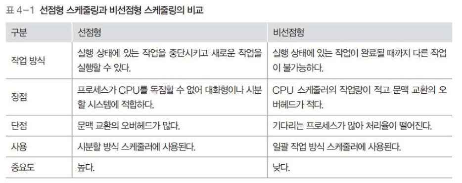 선점형 스케줄링과 비선점형 스케줄링
