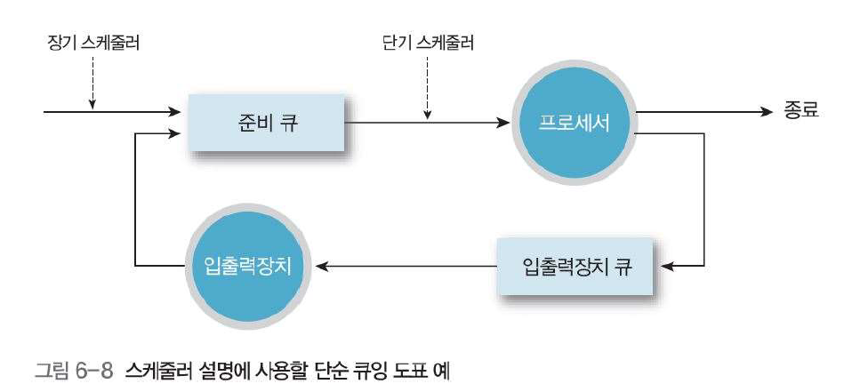 - CPU 스케줄러 : 여러 프로세스의 상황을 고려하여 CPU와 시스템 자원의 배정을 결정