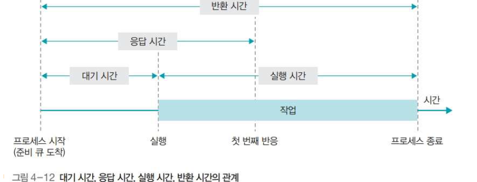 - 반응 시간 보장: 응답이 없는 경우 사용자는 시스템이 멈춘 것으로 가정하기 때문에 시스템은 적절한 시간 안에 프로세스의 요구에 반응해야 함