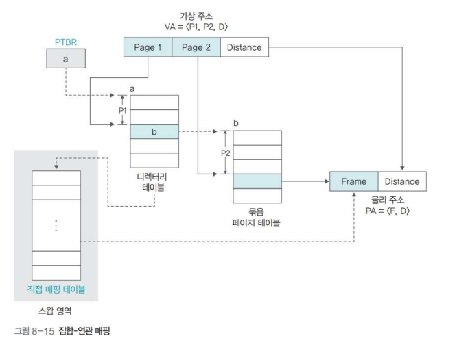 - 전체 페이지 테이블을 스왑 영역에 두고, 페이지 테이블의 일부분을 변환 색인 버퍼(Translation Look-aside Buffer), 또는 연관 레지스터에 일부 페이지를 저장