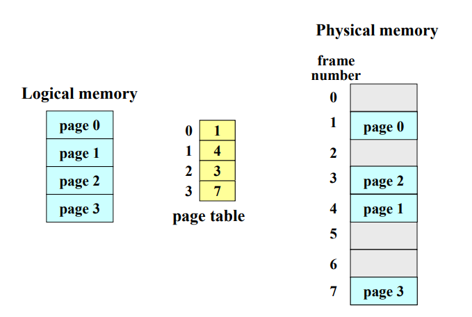 - 페이지와 프레임의 크기는 같으므로, 페이지는 어떤 프레임에도 배치될 수 있다.