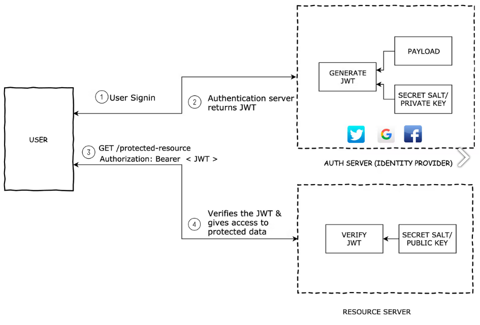 기존에 사용하던 일반 토큰 기반 인증은 토큰을 검증할 때, 필요한 관련 정보들을 서버에 저장해두고 있었기 때문에