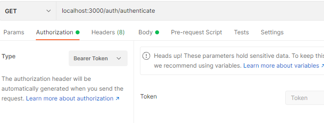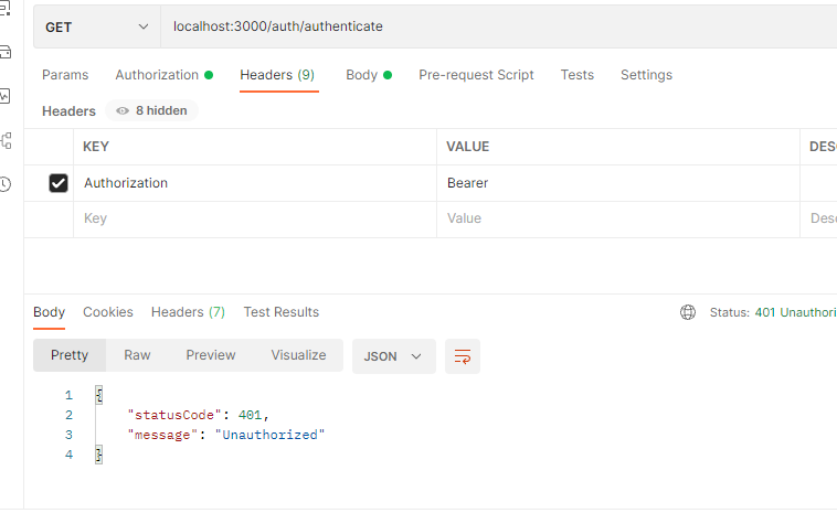localhost:3000/auth/authenticate 에 GET 요청을 보내보자.