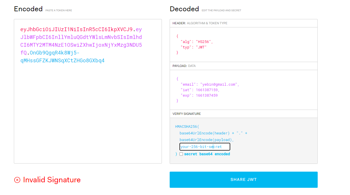 위에서 VERIFY SIGNATURE 부분에서 your-256-bit-secret 에