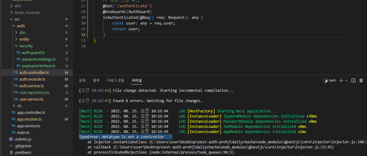 먼저 auth.service.ts 에 유저의 토큰을 검증하는 함수 tokenValidateUser 을 추가하자.