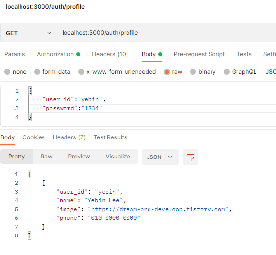 마이페이지와 프로필에 GET 요청을 보내보자.