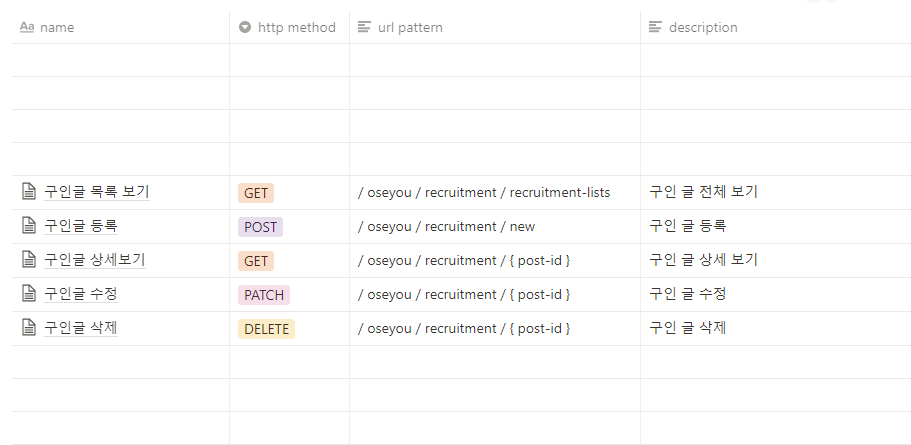 구인글 전체 목록, 구인글 등록, 구인글 상세보기, 구인글 삭제 부분을 구현해보자.
