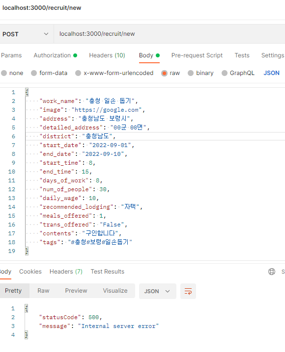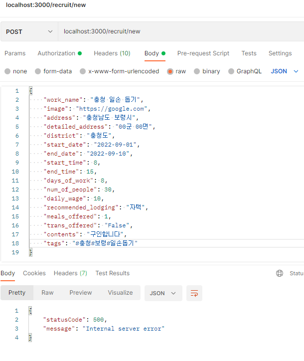 먼저 새로운 구인글을 등록하는 new API를 검증해보자.