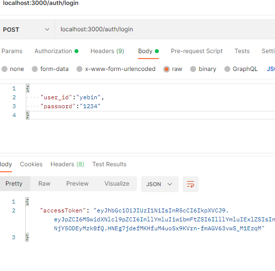 올바르게 로그인한 경우 accessToken이 발급된다.