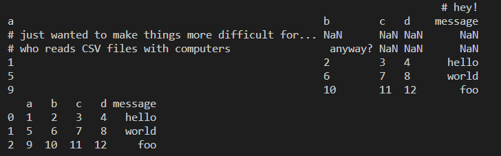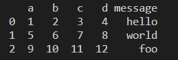 df = pd.read_csv('examples/ex2.csv', names=['a','b','c','d','message'])