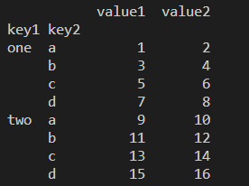 def csv_index(): print(pd.read_csv('examples/csv_mindex.csv')) # 다중 컬럼으로부터 계층적 인덱스 설정하기 parsed = pd.read_csv('examples/csv_mindex.csv', index_col=['key1','key2']) print(parsed)
