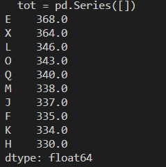 # 파일을 여러 조각으로 나누어 읽기 def read_chunk(): chunker = pd.read_csv('examples/ex6.csv', chunksize=1000) # chunksize를 1000으로 설정 print(chunker) # TextParser 객체 반환 # Series 객체 tot에 chuncker의 요소들의 'key' 로우에 있는 값 세어보기 tot = pd.Series([]) for piece in chunker: tot = tot.add(piece['key'].value_counts(), fill_value=0) # tot을 내림차순으로 정렬 tot = tot.sort_values(ascending=False) print(tot[:10])