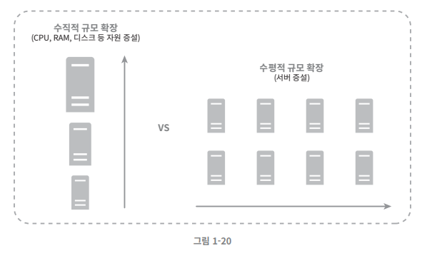 수평적 규모 확장(horizontal scaling, scale-out) 프로세스는 더 많은 서버를 추가하여 성능을 개선하는 행위이다.