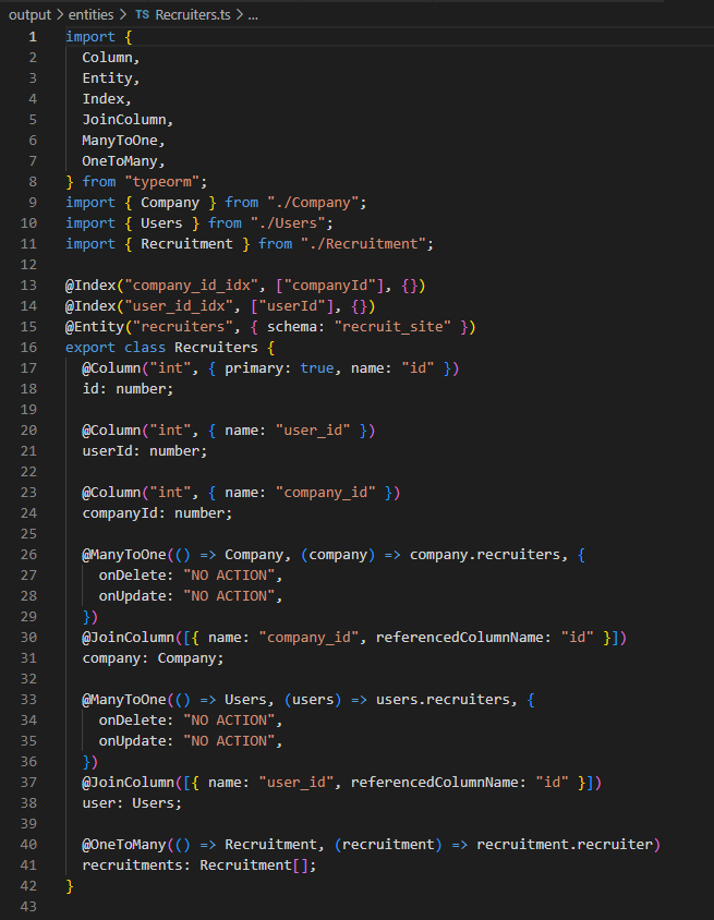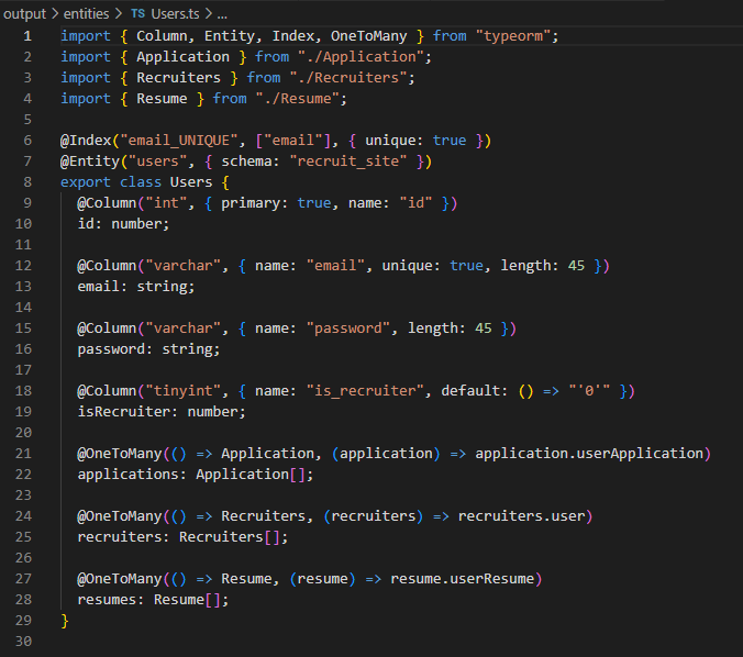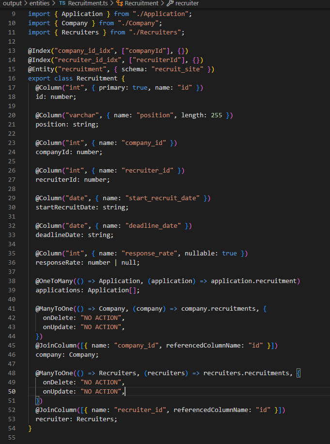 [Database Modeling] 채용 사이트 데이터 모델링 수정, Converting database to TypeORM Entities (Reverse Engineering Tool, typeorm-model-generator) 본문