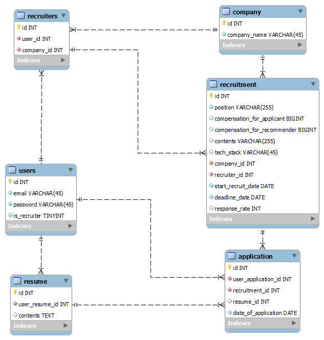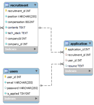 recruiters 모델을 추가함으로써, 회사에서도 채용 담당자로 활동하고 있는 유저를 관리할 수 있게끔 확장한 것이다.