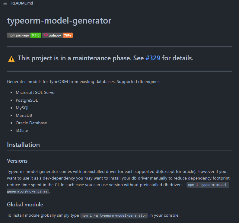 typeorm-model-generator에 더이상 다른 기능들이 추가될 계획은 없다고 한다.