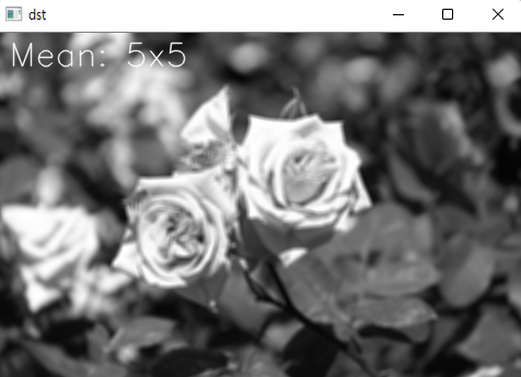 ksize 크기의 평균값 필터 마스크를 사용하여 dst 출력 영상을 생성하게 된다.
