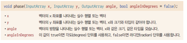 만약 x방향으로 미분, y방향으로 미분이 저장된 두 행렬이 있을 때 그래디언트의 방향을 계산하고 싶다면 phase() 함수를 사용할 수 있다.