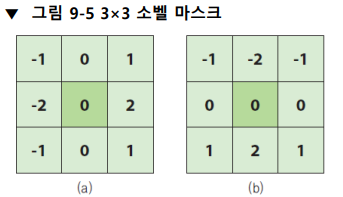 이는 3x3 소벨 마스크보다 정확한 미분 계산을 수행하는 것으로 알려져 있다.