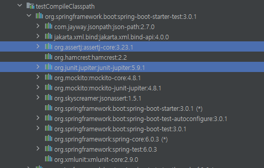 - assertj : 테스트 코드 작성을 편리하게 돕는 라이브러리