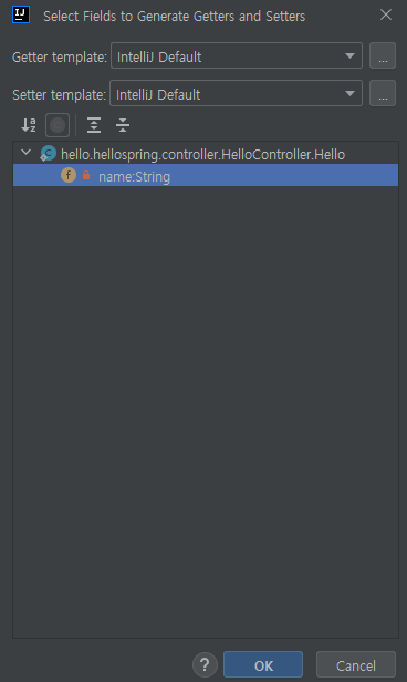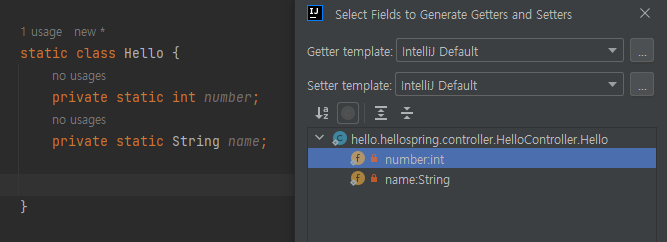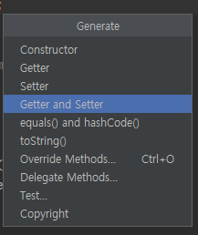 Getter and Setter을 선택해보면 다음과 같이 나타난다.