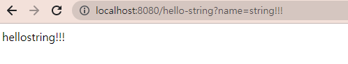 아래와 같이 name에 string!!! 을 담아 요청을 하게 되면, 아래와 같이 hellostring!!! 라는 문자열을 출력하게 된다.