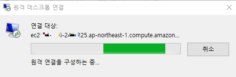 이후에 연결 구성을 하며 접속을 시도하는 창이 나타나고,