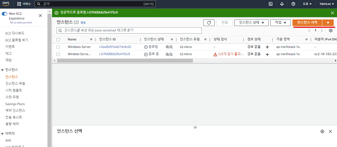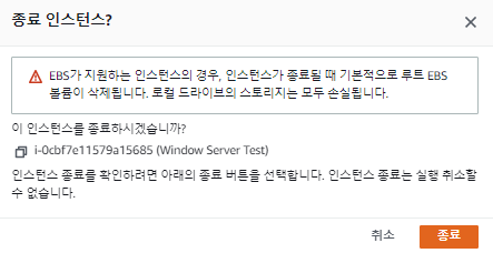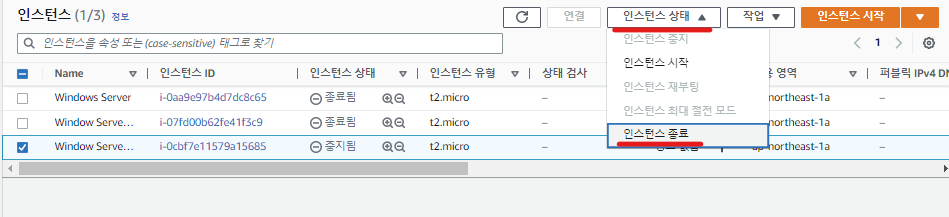이제 인스턴스를 종료해보도록 하자.