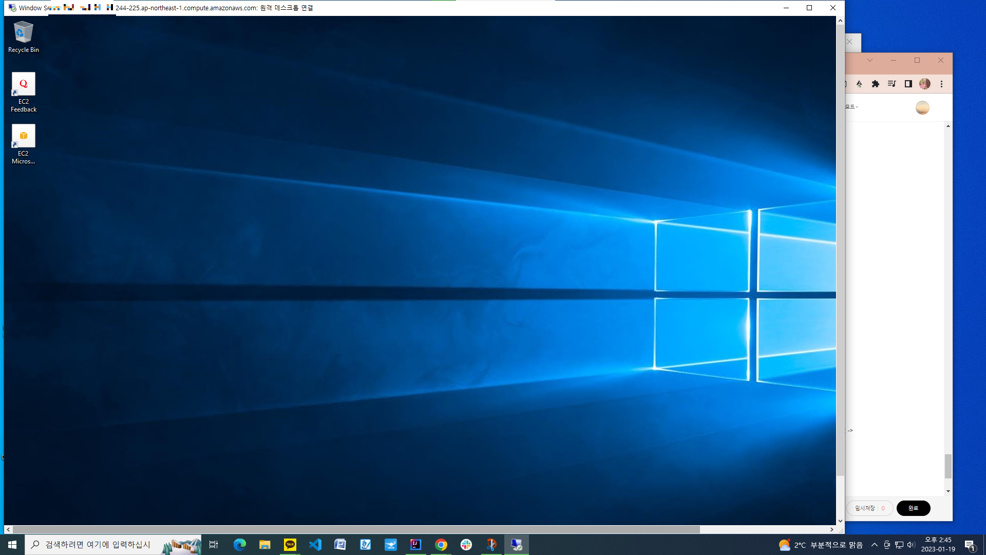조금만 기다리고 나면, 다음의 aws ec2 원격 pc 창이 뜨는 것을 확인할 수 있다.