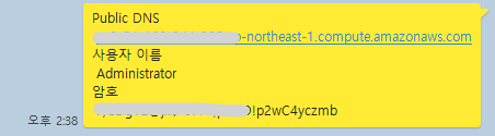 암호 해독을 하게 되면, 다음과 같이 Public DNS 주소 아래 암호 키가 나타난다.
