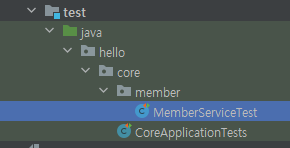 member 패키지 내 MemberServiceTest 클래스를 만들고, 간단한 회원가입 join 테스트 케이스를 작성해보자.