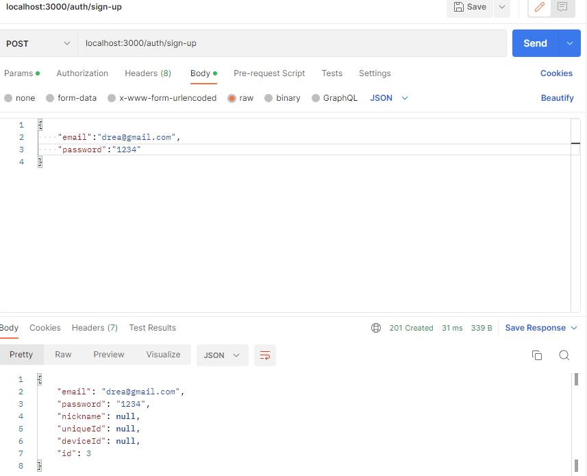 이제 간단히 Postman에서 API 테스트를 해보자.