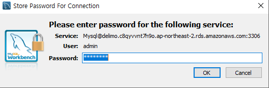 Username 에는 RDS 인스턴스 생성 시 만들었던 마스터 사용자의 이름을 입력해주면 된다.