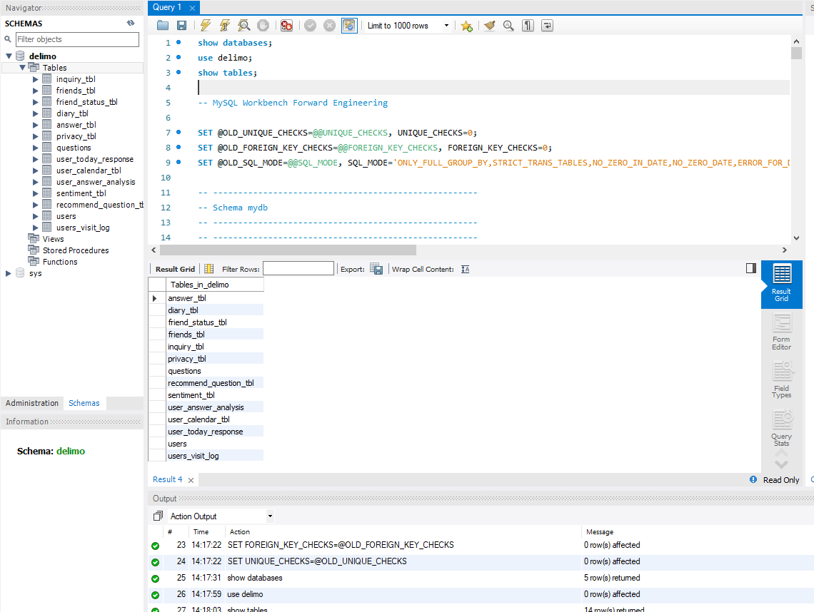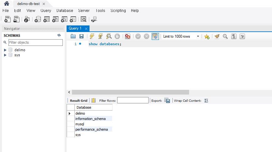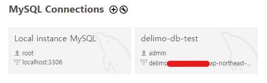 이제 workbench 시작 창에도, delimo-db-test 라는 이름의 새로운 connection 이 나타난 것을 확인할 수 있다.