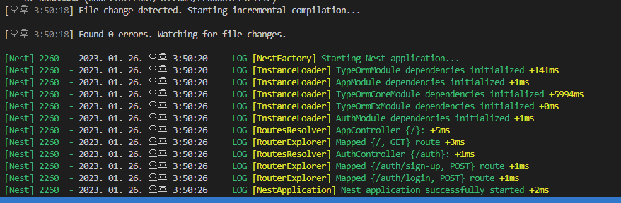 실행해보니 다음과 같이 정상적으로 애플리케이션이 시작됨을 확인할 수 있다.