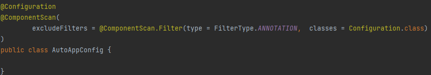 - excludeFilters : 컴포넌트 스캔에서 제외할 대상을 지정