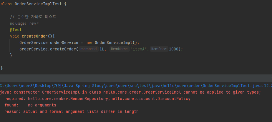 public OrderServiceImpl(MemberRepository memberRepository, DiscountPolicy discountPolicy) {