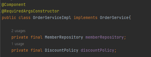 @RequiredArgsConstructor은 final 키워드가 붙은 필드들에 대하여 자동으로 생성자를 만들어어주는 애노테이션이다. 생성자가 한 개인 경우에는, 역시나 @Autowired를 따로 사용하지 않아도 된다.