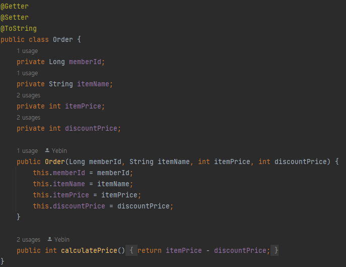 이번에는 Order 클래스에 lombok을 추가해보자.