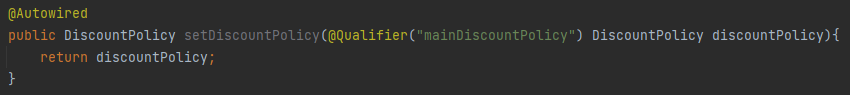 이제 mainDiscountPolicy라는 이름을 @Qualifier 애노테이션으로 등록한 스프링 빈이 조회가 될 것이다.